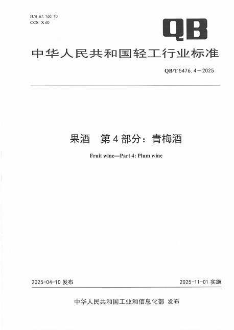 近期,由四川省食品发酵工业研究设计院有限公司(以下简称“省食研院”)参与起草的轻工行业标准—《果酒第4部分:青梅酒》(QB/T 5476.4-2025)正式发布实施。该标准对青梅酒的生产工艺、感官品质、理化指标及检验规则等方面作出系统规范,为青梅酒产品的质量控制和行业健康发展提供了科学依据与技术支撑。标准的实施将有助于统一产品质量,提升行业技术水平,进一步推动果酒产业结构优化与标准化发展。